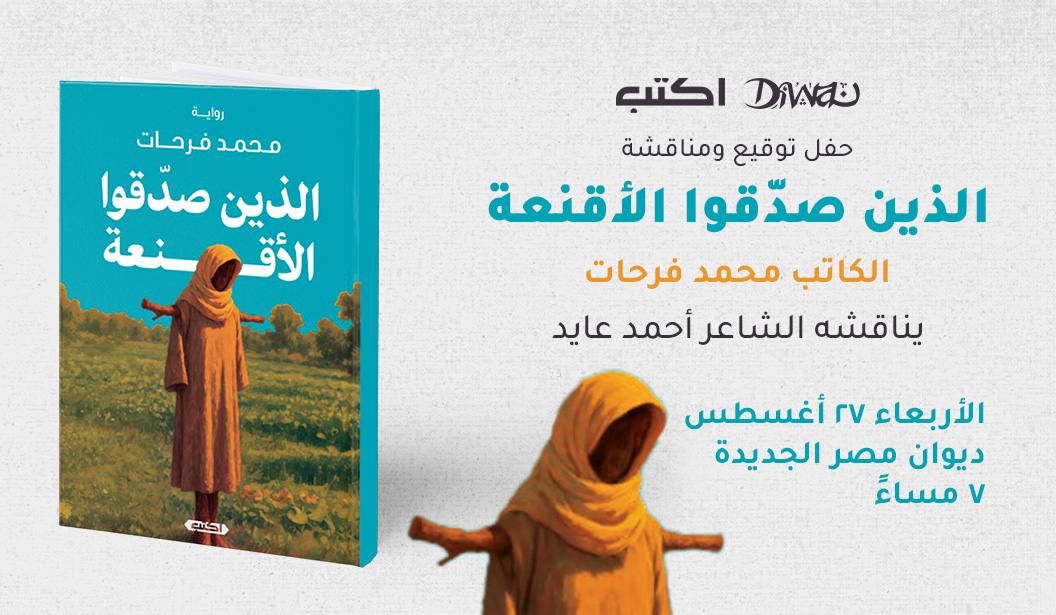 حفل توقيع ومناقشة كتاب الذين صدقوا الأقنعةالكاتب محمد فرحات يناقشه الشاعر أحمد عايدديوان مصر الجديدةالأربعاء ٢٧ أغسطس٧ مساءً