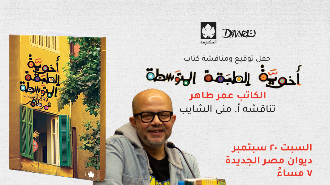 حفل توقيع ونقاش كتاب أخوية الطبقة المتوسطةالكاتب عمر طاهر تناقشه أ. منى الشايبالسبت ٢٠ سبتمبرديوان مصر الجديدة٧ مساءً