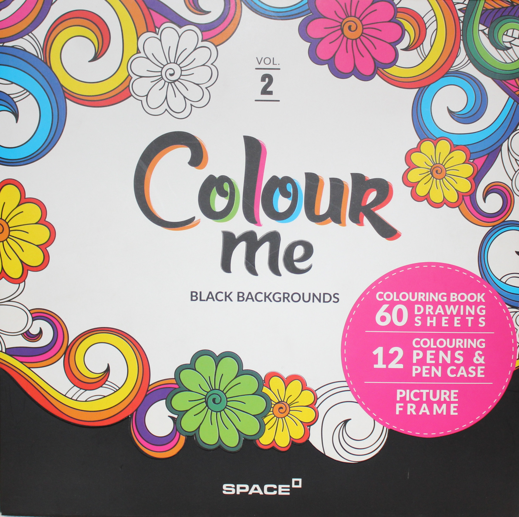 Colour Me Vol 2 Colouring Book Set 60 Drawing Sheets + 12 Colouring Pen in Pen Case + Picture Frame