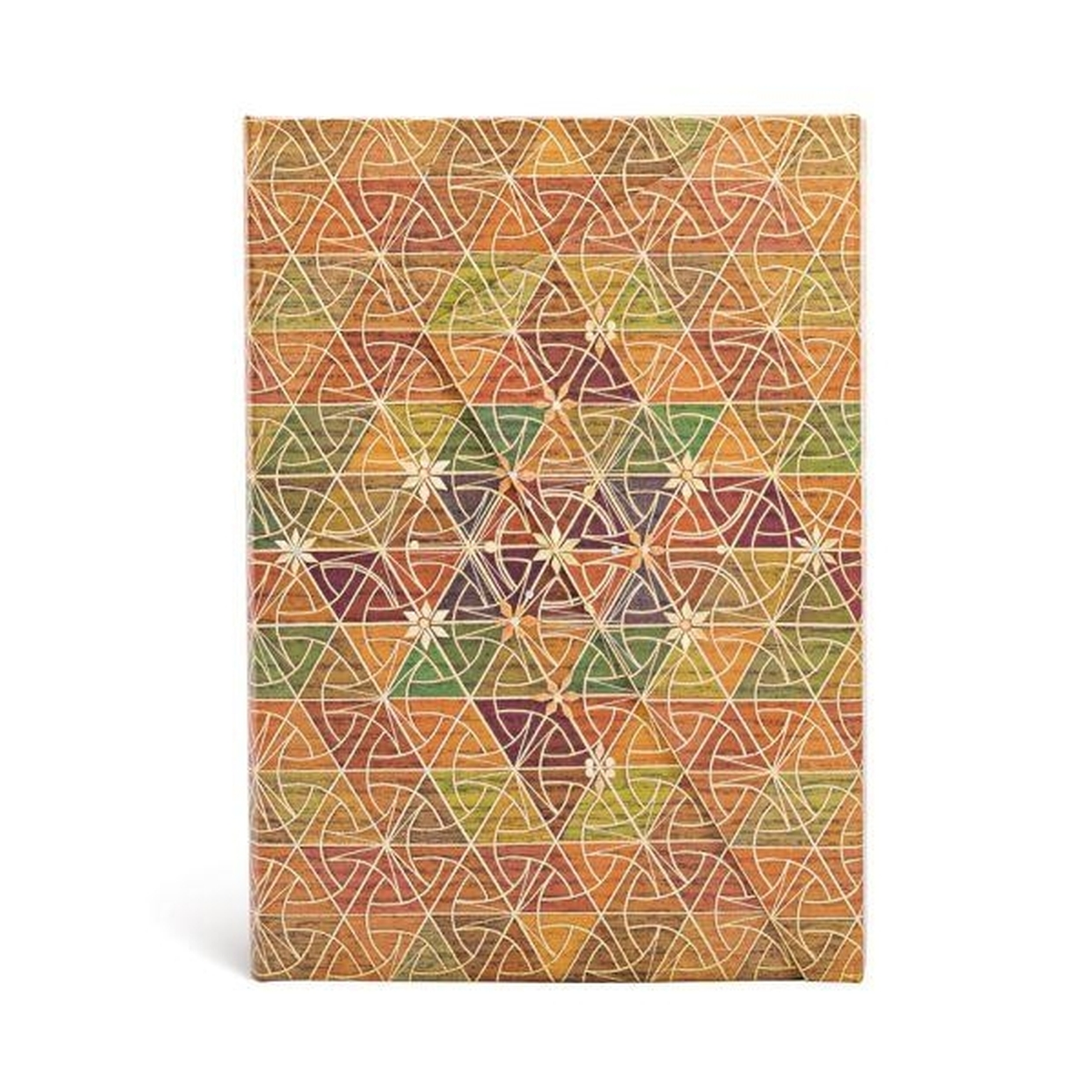 Kirikane (cut gold) is an ancient technique in which the artist uses a bamboo knife to cut out designs from sheets of gold leaf before affixing them with a mixture of hide and seaweed to a Buddhist artifact. Paperblanks Kirikane Metta journal is inspired by a mosaic pattern created by devoted kirikane revivalist Sayoko Eri (1945–2007), and reproduces her design using our unique printing process.
